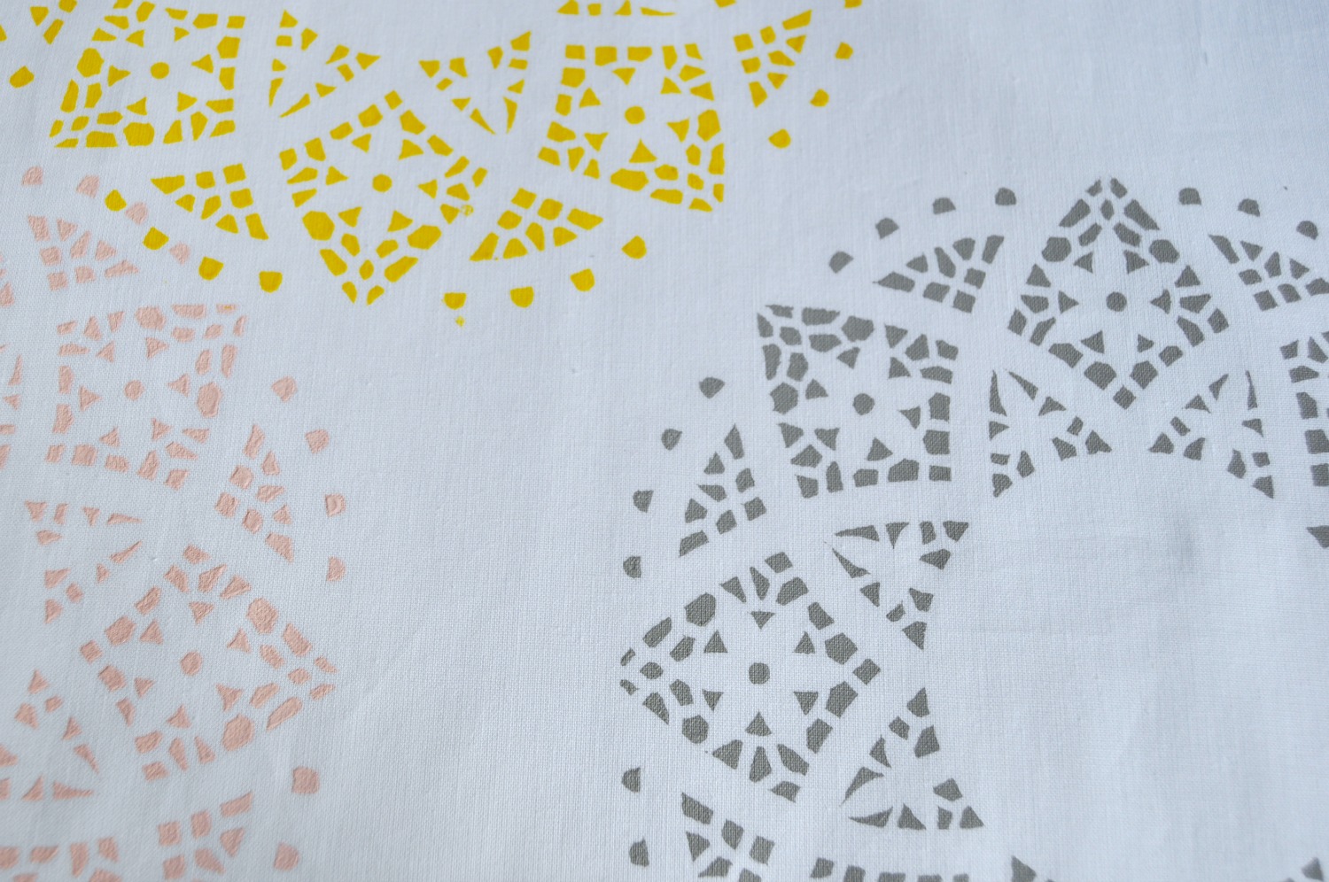I’ve been a big fan of Karen’s screenprinted fabrics for a long time now, especially her geometric prints, so when she posted photos of her new Allotment print, I let out a squeal of delight. Teeny-tiny geometric bits, all in it together, patchwork-style?! My fabric-loving heart swooned!