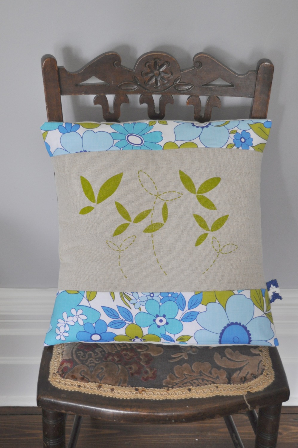 secondly, i needed a project to try out some of Lotta Jansdotter's Little Blomster fabric from her new collection Mormor coming out very soon. I am completely in love with this fabric and knew it would be the perfect background for the vintage fabrics.