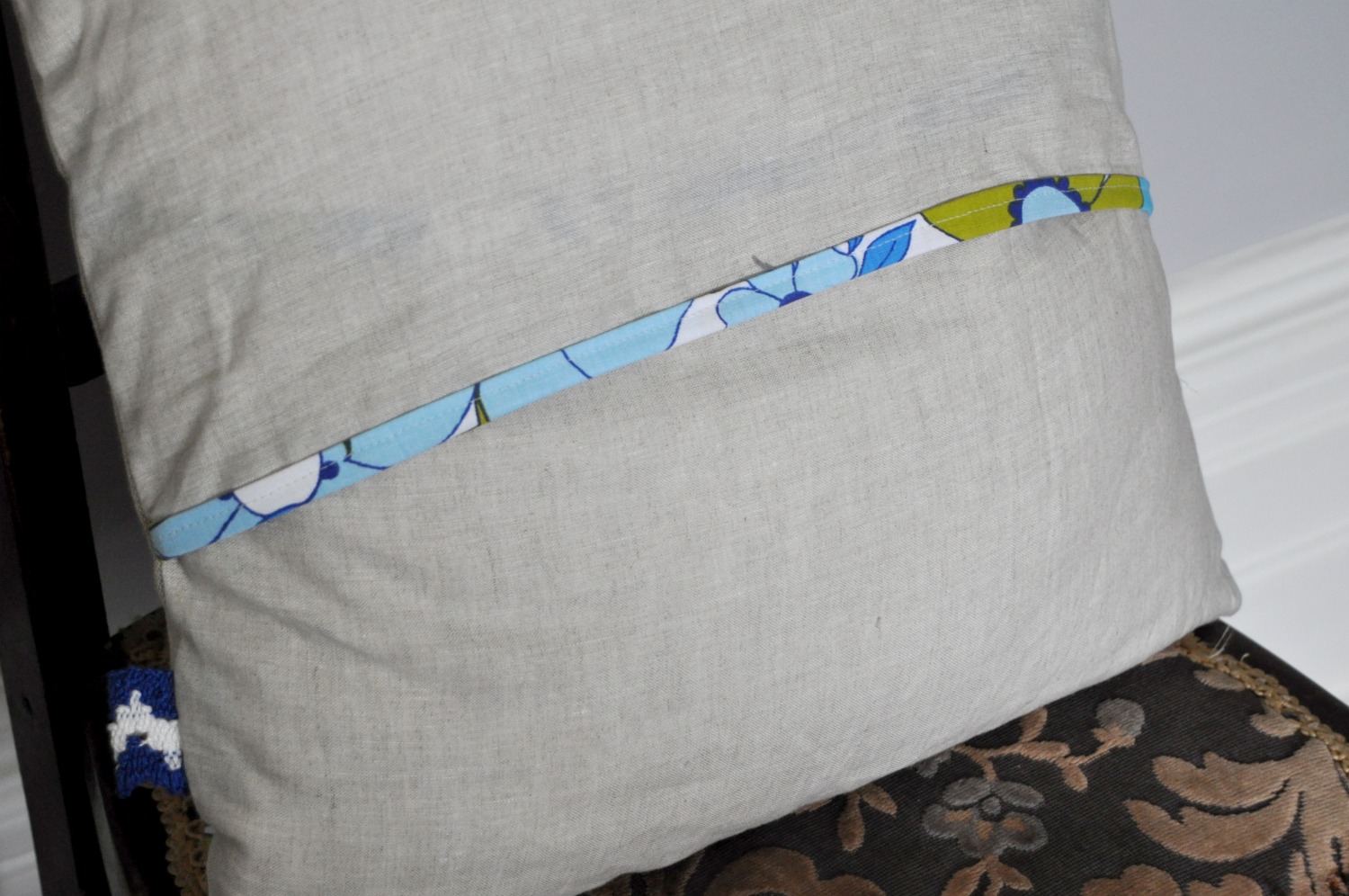 First up was hand making the binding for the envelope back. I love making the binding for cushions...a little pop of colour showing it's face.