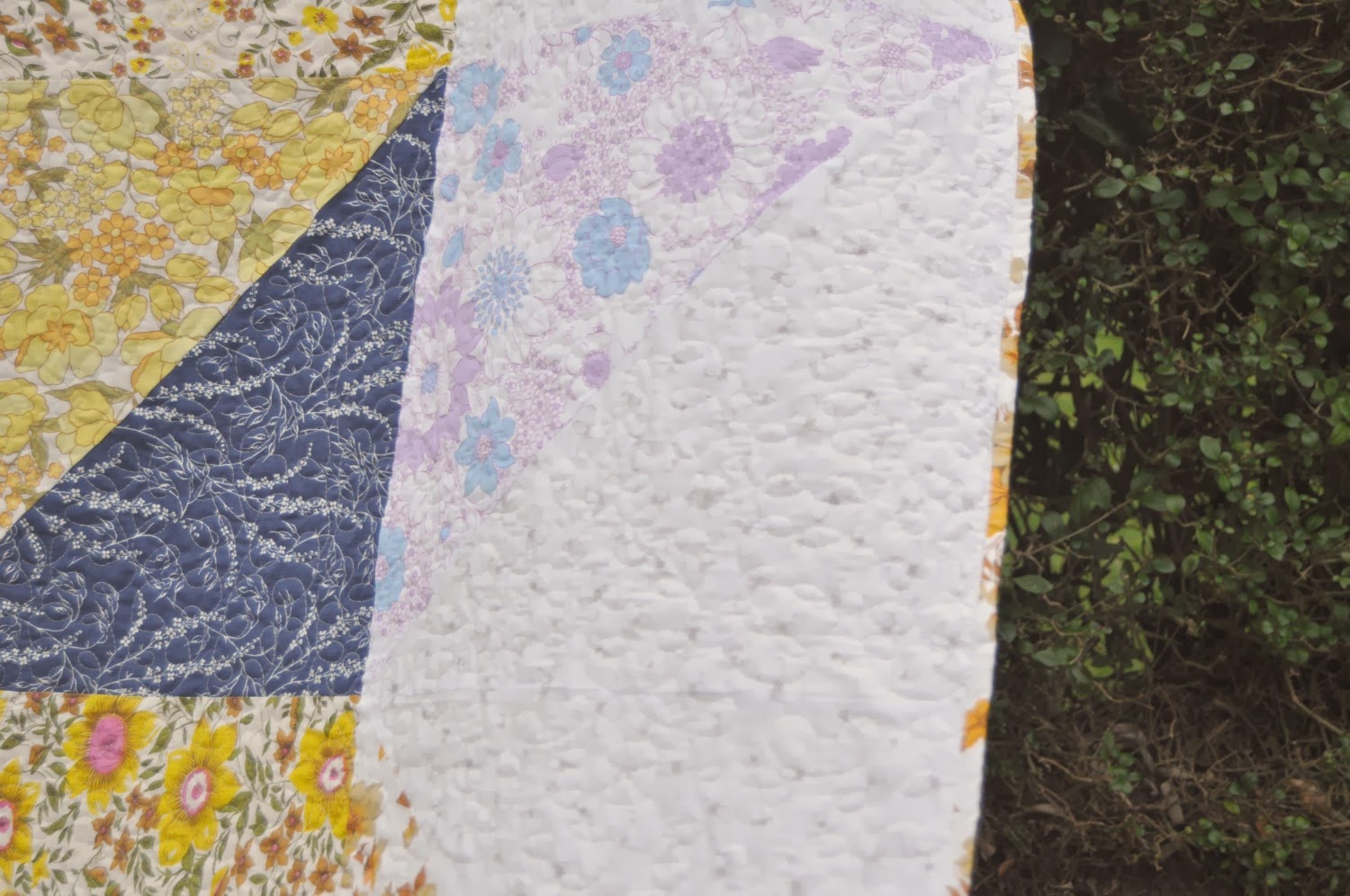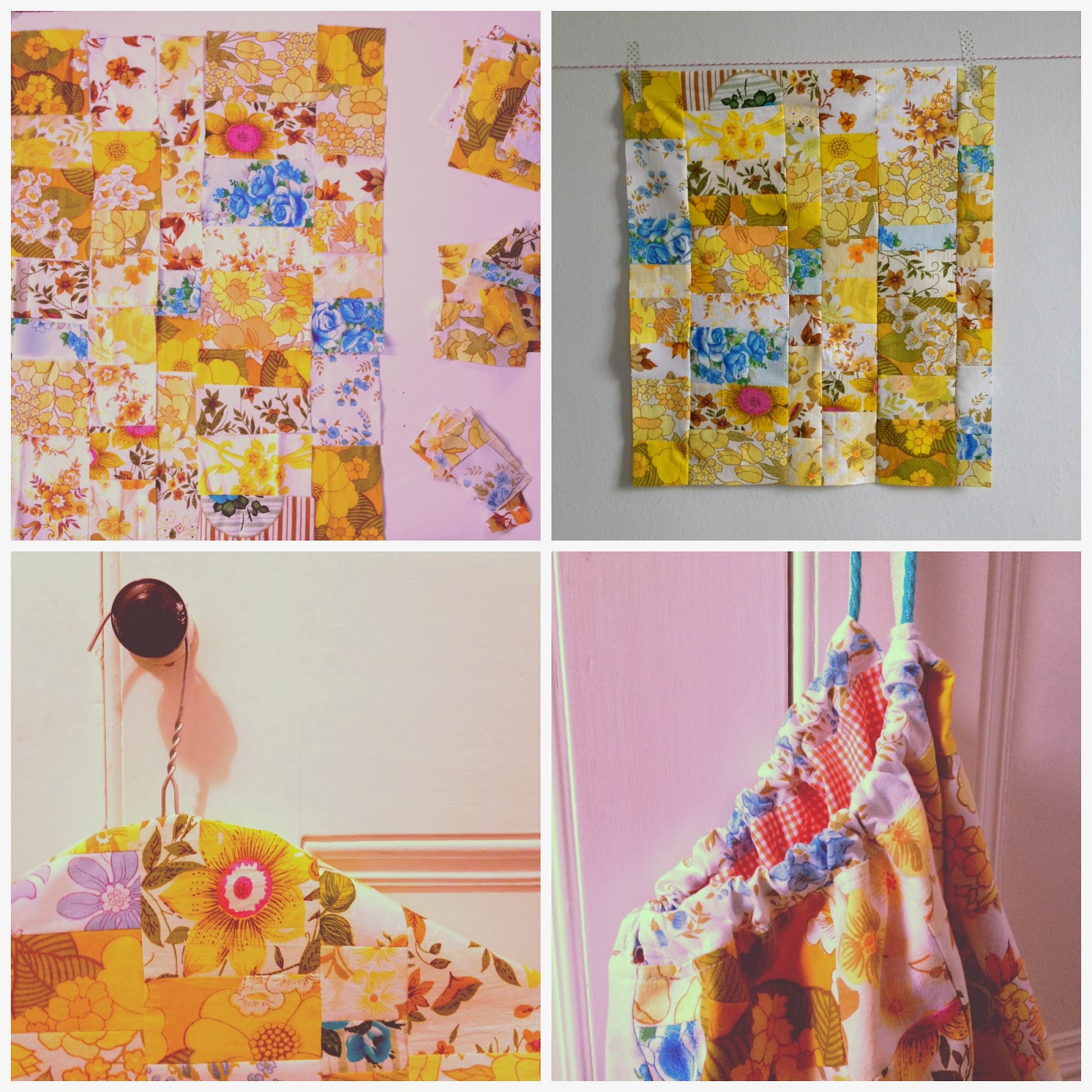 to finish off i bound it with a scrappy binding made up of some of the leftover vintage fabric pieces which turned out subtle enough but with a little bit of quirky character.